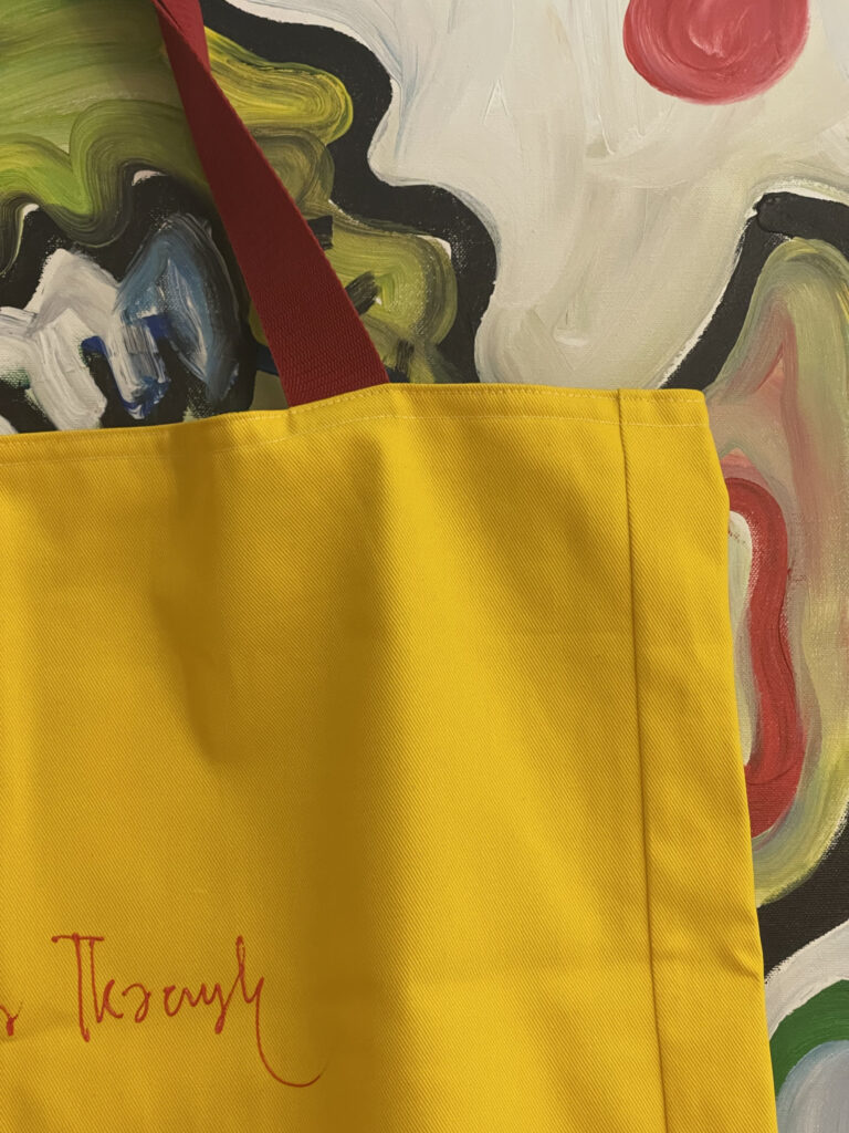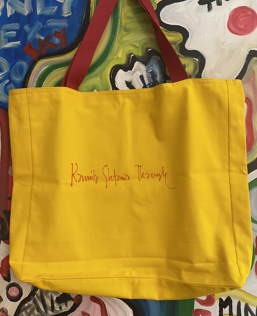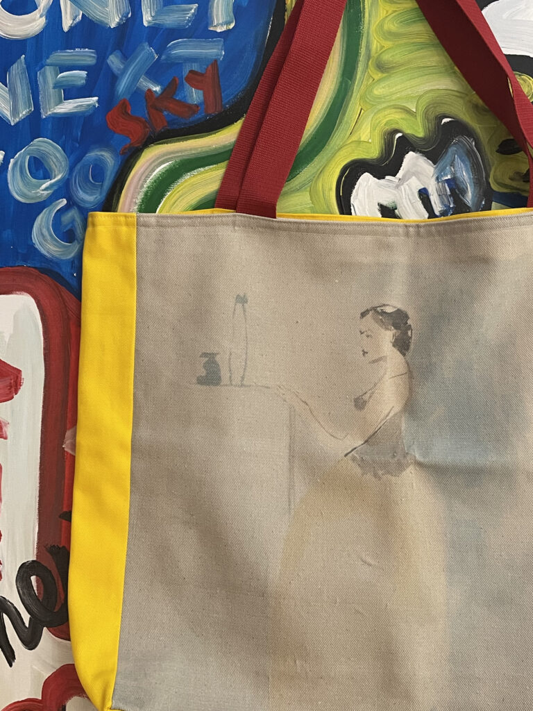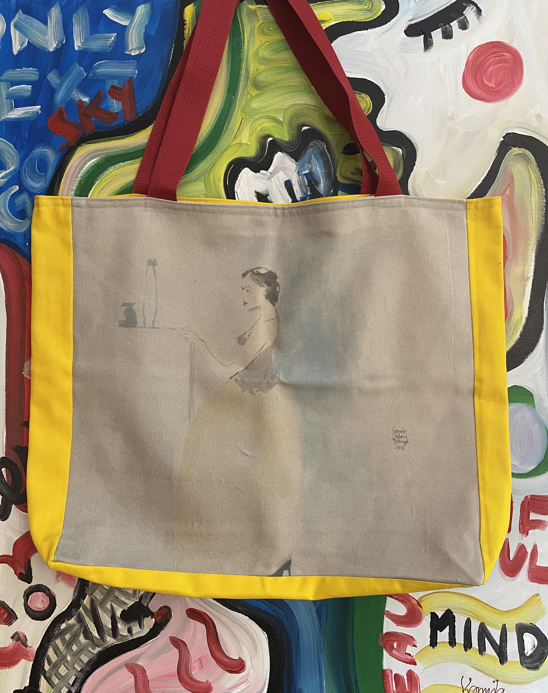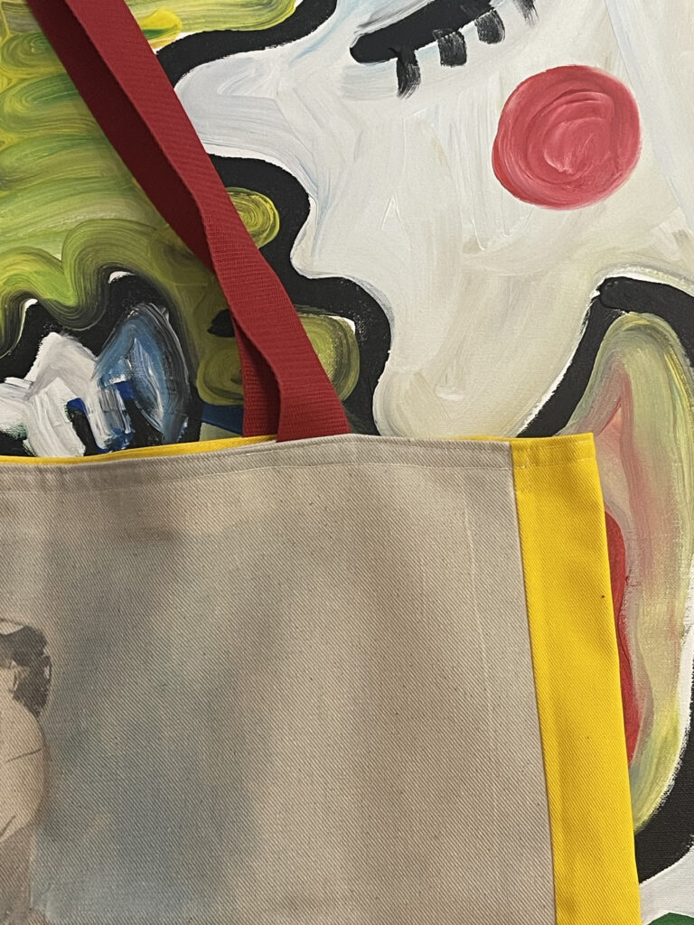 Artystyczna torba bawełniana XXL, by Kamila Stefania Tkaczyk. Unikatowa, jak dzieła, które są naniesione w formie pracochłonnego wydruku. Limited edition, hand made. Tył to słoneczne lato.