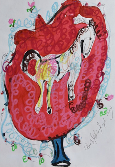 ‚White horse’, mixed media, A4, Kamila Stefania Tkaczyk 2019.