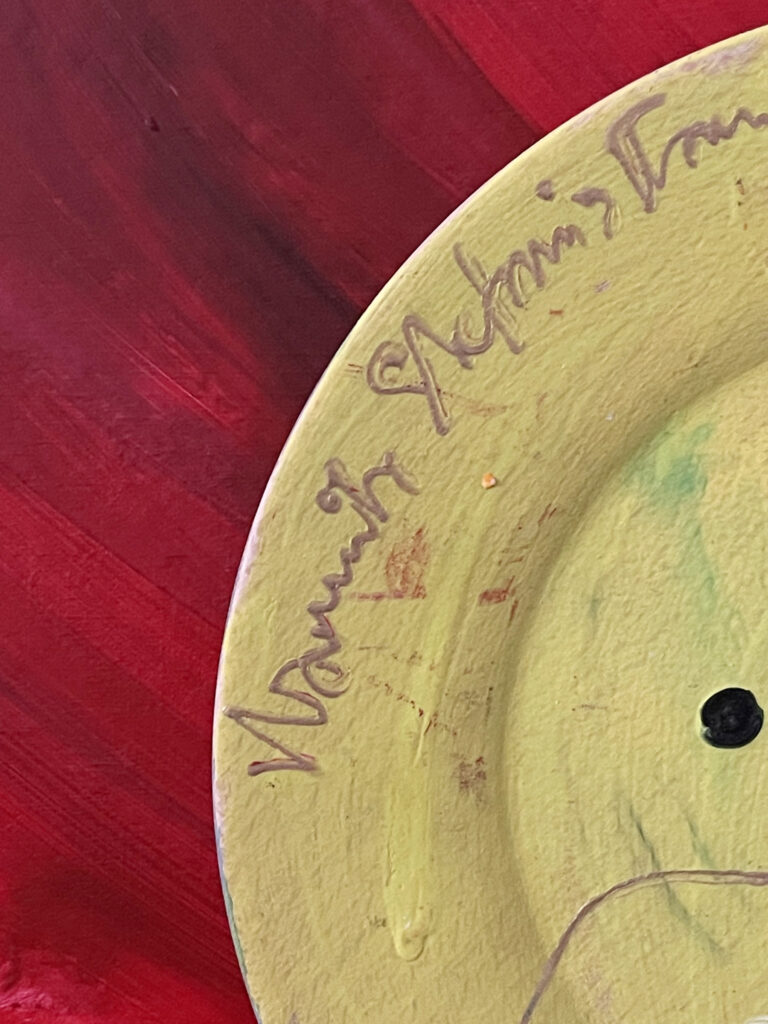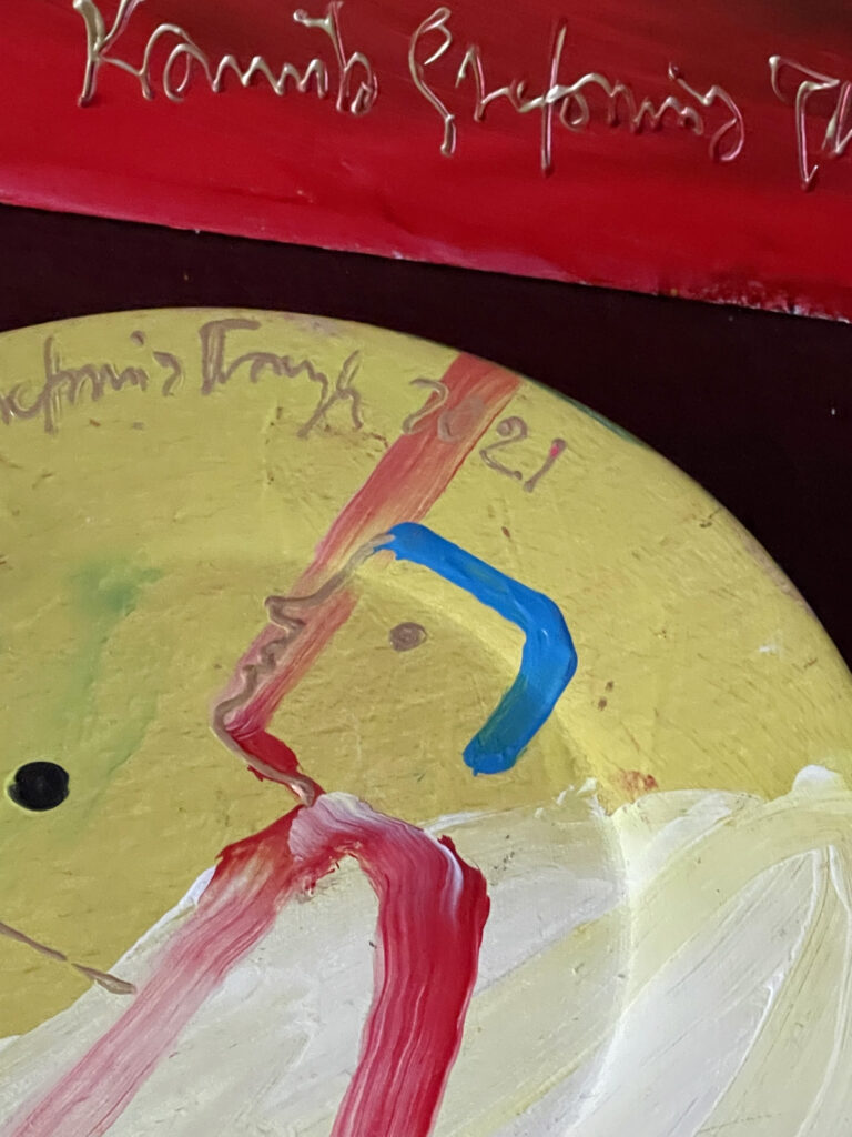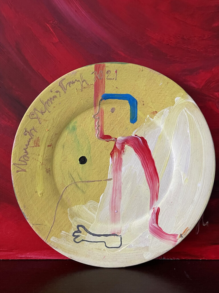 Plate painting by Kamila Stefania Tkaczyk. Wood, acrylic, diameter 22 cm.