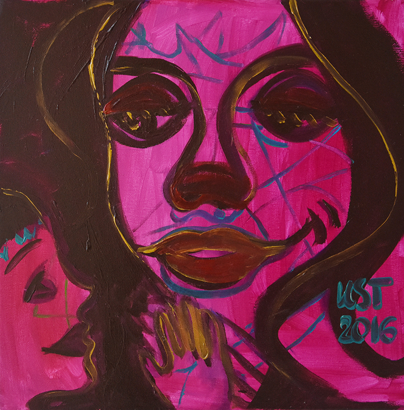 ‚With son’, acrylic, 40 x 40 cm, Kamila Stefania Tkaczyk 2016.